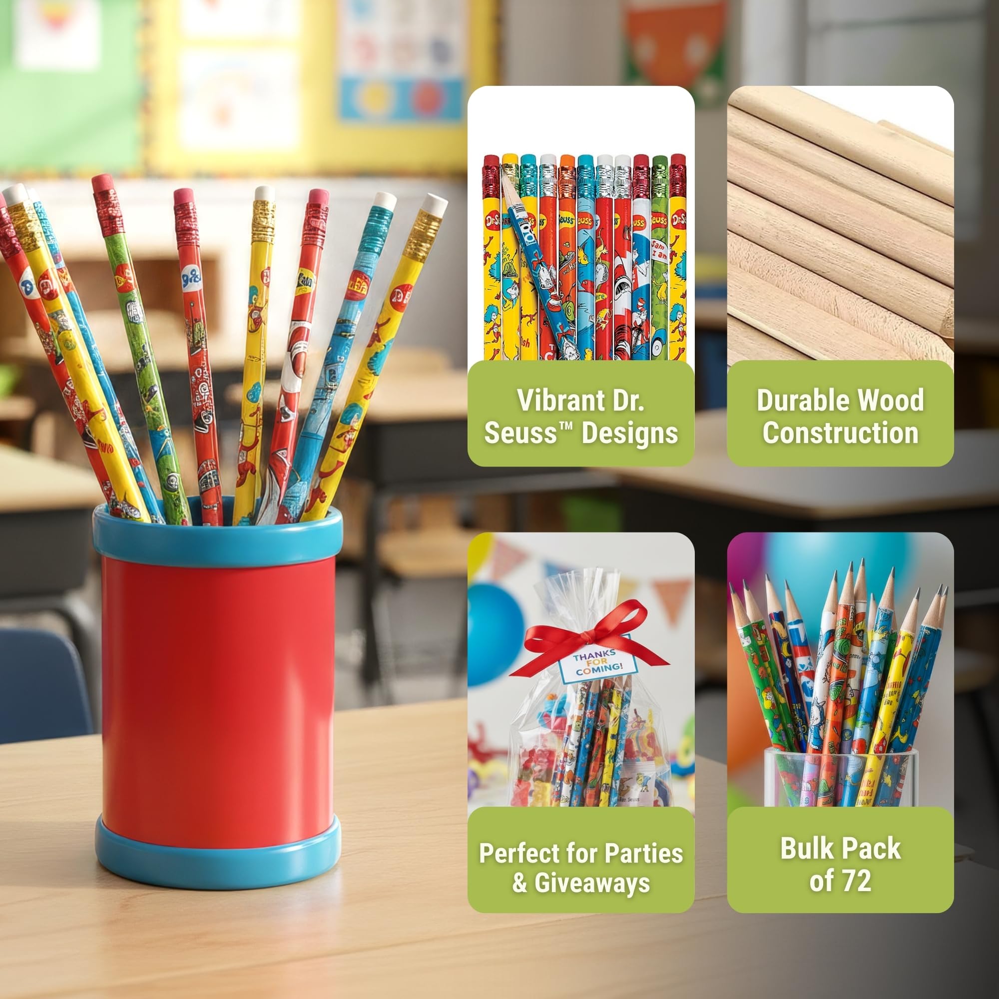 - Cute Pencils: Adorned with assorted Dr. Seuss designs, these kids’ pencils make homework fun; These lead pencils are perfect for everyday use at home, in the classroom, and more