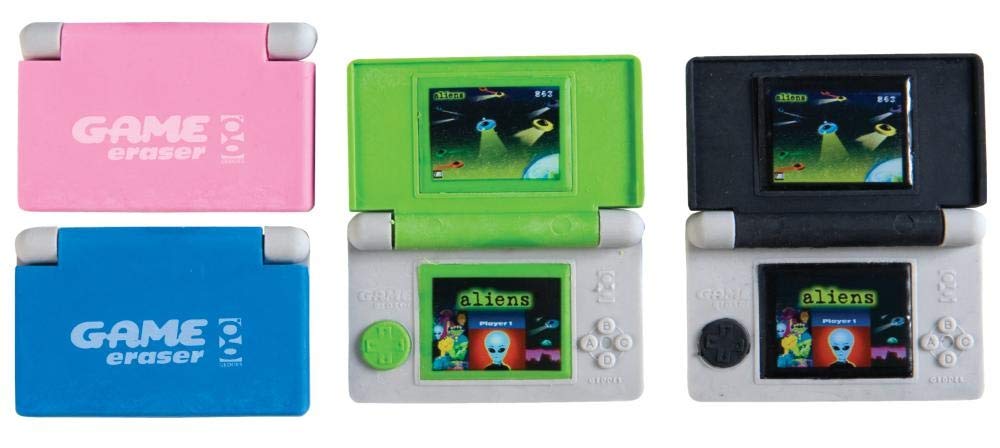 - Video Game Erasers: A great addition to any gaming-themed party, these erasers are shaped like hinged handheld game consoles